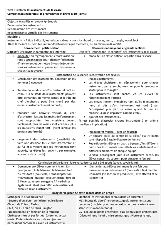 Fiche Les Instruments De La Classe