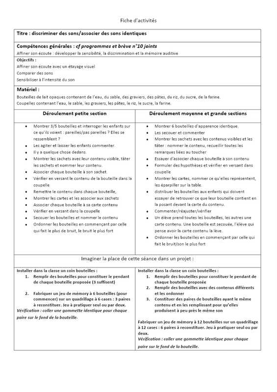 Fiche Bouteilles Discrimination