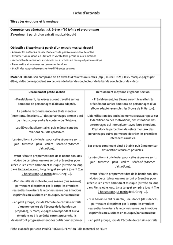 Fiche Les Émotions Et La Musique